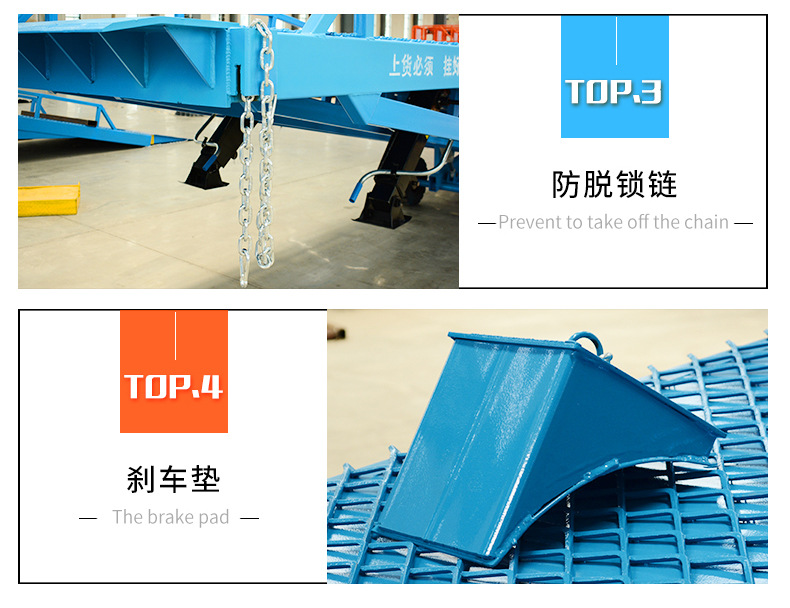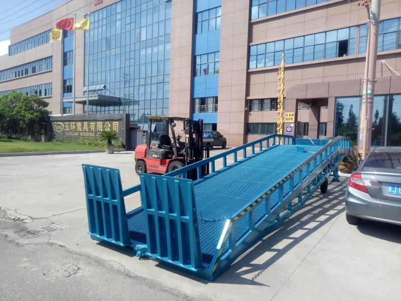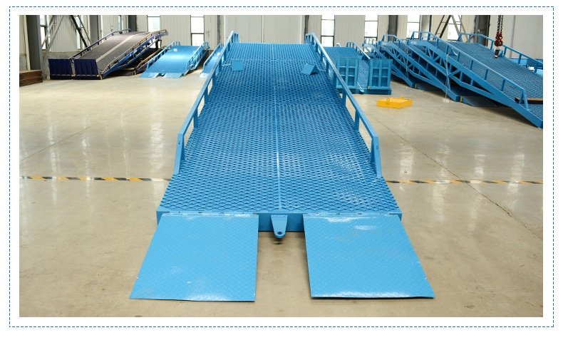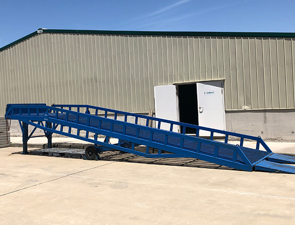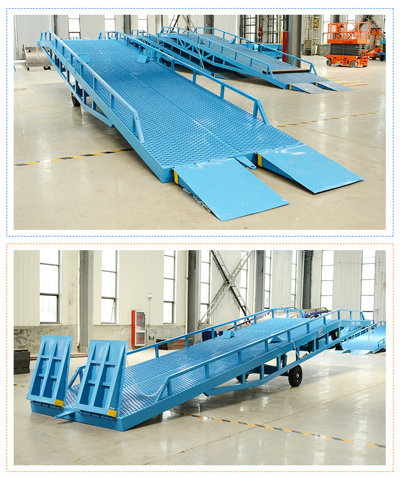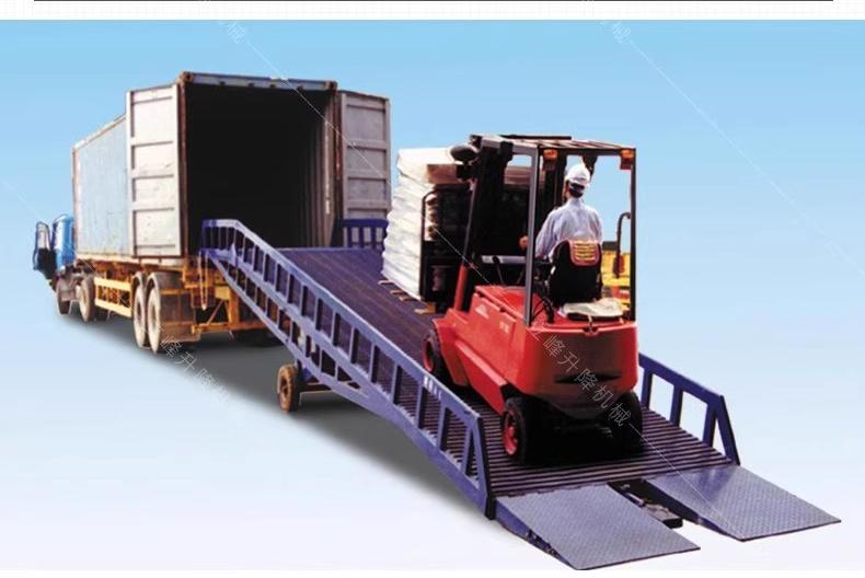 移动式登车桥可提高物料装卸速度,确保作业安全,是现在物流之理想辅助装卸设备。